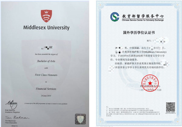 国外大学研究生硕士学位证书与中留服研究生学历认证证书
