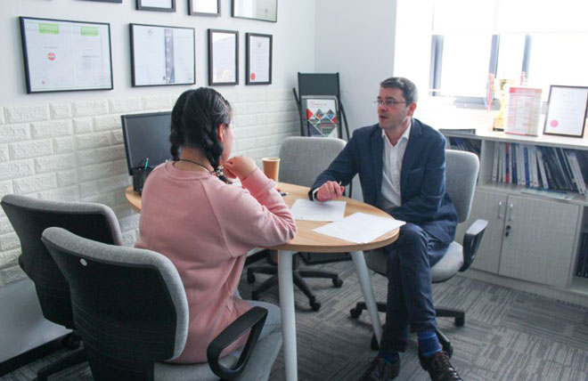 有位同学谈到了自己对高中现阶段的课程设置不满意,Chris继而深入这个问题,详细了解了这位同学感兴趣和不感兴趣的领域以及原因,并帮她梳理了优势和规划。通过这种“聊天”式的面试,这位同学最后也意识到原来选择伦敦大学预科课程除了能很好的贴合的自己的兴趣,也是一个转换专业的崭新机会。