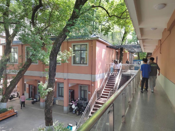 教学楼二楼于上年修葺新建了更多智能教室,在一间间崭新明亮的智能教室,智能触控大屏取代了传统黑板,配上可随意拼接的课桌椅,可以充分实现教与学的互动。