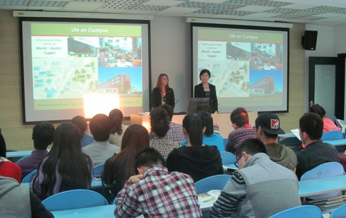10月28日美国佛蒙特大学国际市场经理Carrie Pettee来我院与学生交流,介绍了佛蒙特大学基础情况已经周边设施。