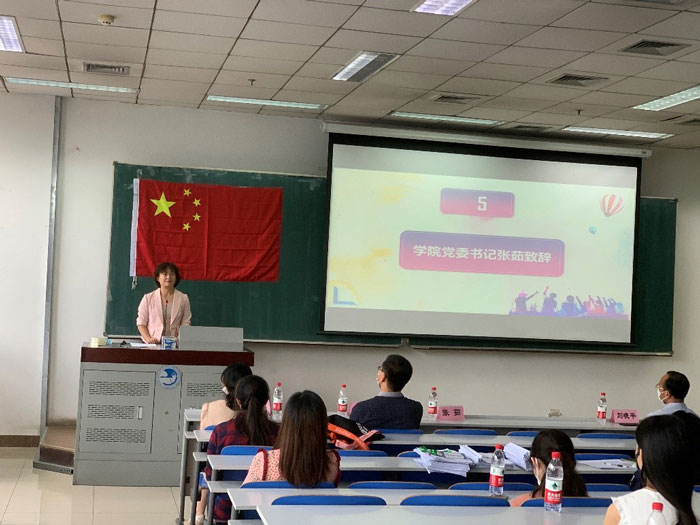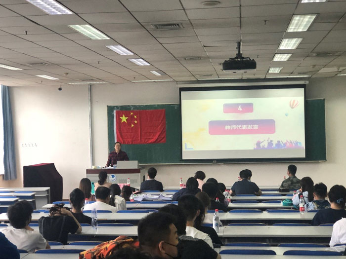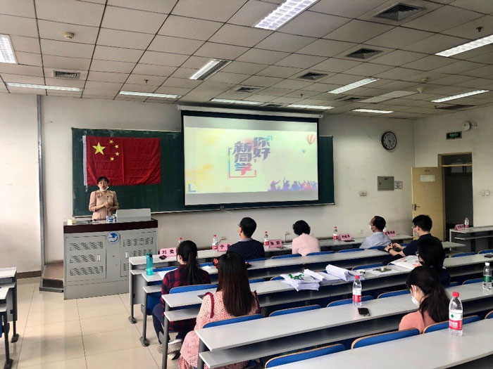网络教育学院(继续教育学院)党委书记张茹教授首先代表学院欢迎新同学的到来。随后,张茹书记以师长、博士生导师的身份向新同学在北邮的学习之路,提出了四点希望:一是做最好的自己。指出在新生中,有同学已经获得了国外offer,也有高考成绩607分,身怀特长的学生,希望同学们要学会突破,要敢于打破自设天花板,在北邮这个新起点上拼尽全力去做更好的自己;二是希望学会自律。大学除了授业传道解惑外,更重要是自我塑造。讲述了以往学长取得成绩,希望同学们越努力,越勤奋,越自律,才能越优秀,学院期待着2020级的捷报;三是不惧困难。指出在新生中有只身前往报到的同学,也有只身去海外游学的同学,这些同学勇敢面对第一次的陌生、不安,不惧困难,为大家做出了榜样。希望同学们在北邮造就一身不惧困难的能力,随着自己的梦想无畏向前;四是希望同学们不负家国、不负青春,不负家人、不负自己,创造属于自己的较佳高光时刻!