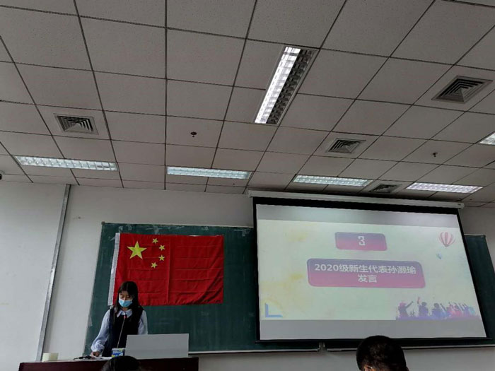 2020级项目学生孙灏瑜代表新生发言。表示十分荣幸走进了北京邮电大学这个充满知识与科技的殿堂,翻开了人生新的篇章,将积极适应新的环境,增强学习的创造性和主动性,独立思考,细心观察,谦虚严谨,在新的学期开启新的期望,全力以赴去追逐梦想。