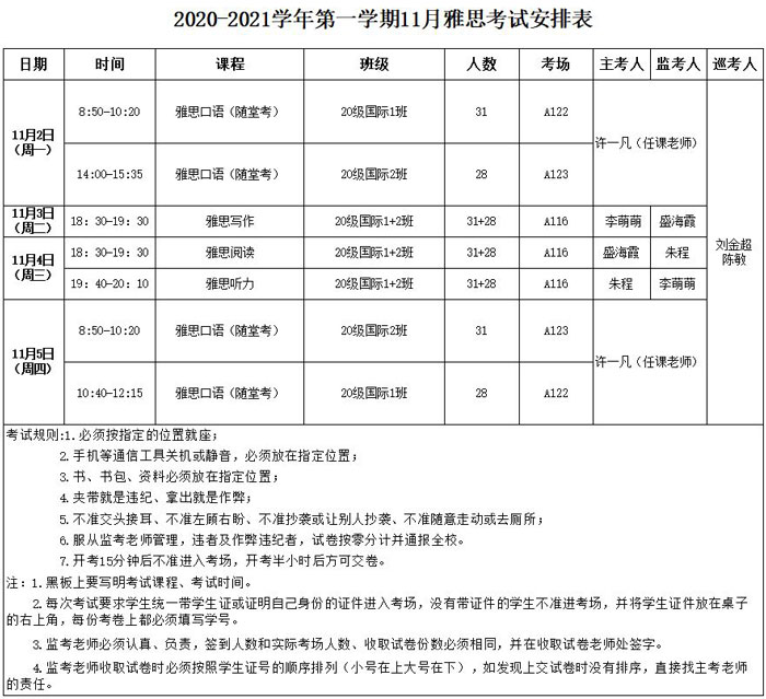 11月2日至5日南理工2020级国际本科学生首次参加校内雅思月考,听说读写,全面考核,同学们将一步一个脚印稳扎稳打,乘风破浪。