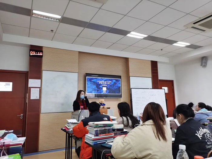 讲座中,Michelle老师向同学们介绍了萨塞克斯这座城市的风貌、大学的地理位置、学校优势专业、学科排名、入学要求等。Michelle还给同学们带来了礼物,还准备了学校的明信片,深受同学们的喜欢。讲座结束后,同学们踊跃积极地向老师提问,Michelle很耐心地向同学们解答问题,并给出了如何进行院校申请、专业选择的建议供大家参考。
