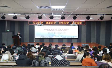发布时间:02-01 来源:留学桥由教育部国际合作交流司主办、教育部留学服务中心承办、西安外国语大学出国留学人员培训部协办的“2020年教育部‘平安留学’出国留学行前培训会”,于12月20日在西安外国语大学雁塔校区2号教学楼地下阶梯教室举行。由于受新冠肺炎疫情的影响,这次接受培训人员,主要是我校国际项目学生160人。培训会由出国留学人员培训部学生科科长刘莉主持,副主任杨丽娟致辞。