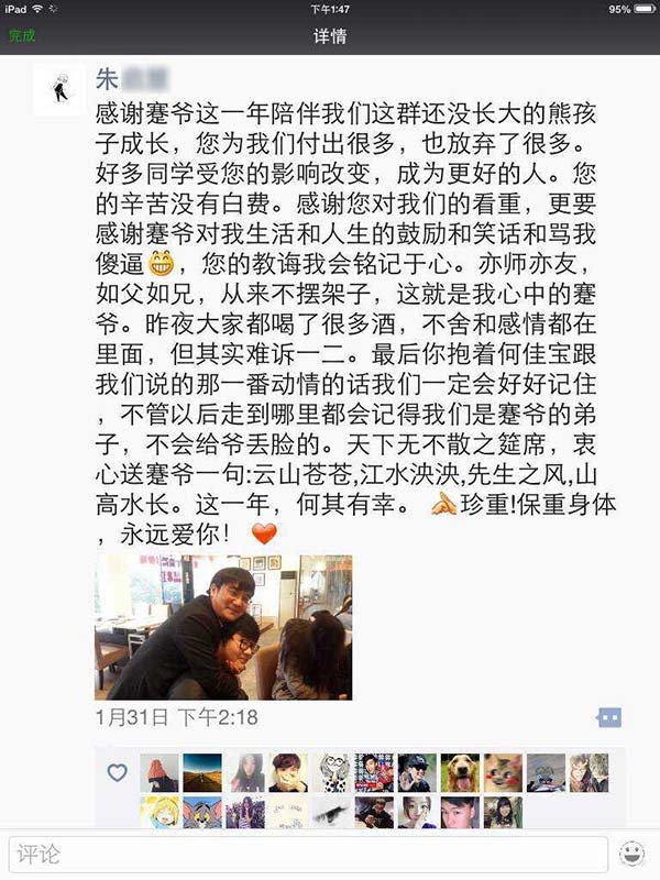点击查看全文上海大学ACCA有着这样一群老师,他们不仅学术渊博,经验丰富,让学生在学术方面脱颖而出;而且充满活力,热情洋溢,亦师亦友,是学生在学习生活上的榜样,真正做到教书育人。比如ACCA讲师蹇老师,学生亲切的称为蹇爷,一个小小的称呼折射出学生对老师的喜爱,对老师的认可。好了,话不多说,看看搜集来的学生评价: