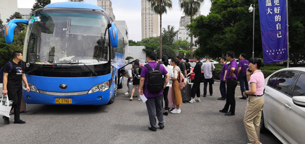 在学校食堂就餐后,各位小萌新集合乘坐大巴前往军训基地参加军训。