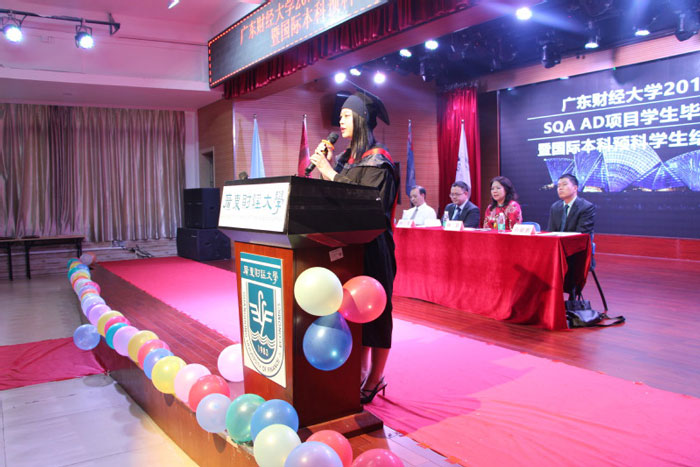 发布时间:02-26 来源:留学桥5月31日下午2点30分,国际学院在学生活动中心隆重举行了广东财经大学2019届SQA AD项目学生毕业典礼暨国际本科预科学生结业典礼。教育部留学服务中心国际处韩三军副处长、孙毓鹏科长、教育部留学服务中心SQA AD项目负责人张丽辉女士、学校国际交流与合作处李新博处长、国际学院林莉院长、国际学院谭玉祥书记、全体2019届SQA AD项目、国际本科预科毕业生及家长,全体国际学院教职工及嘉宾140多人出席本次活动。