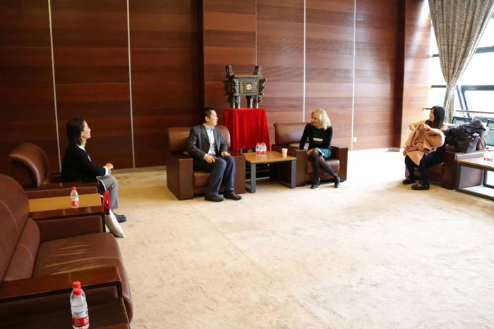 随后,陶陌在音乐厅会议室与Cristina Frosini进行交流座谈,双方介绍了各自学校的总体情况。陶陌代表我校对Cristina Frosini表示热烈欢迎,并介绍了我校在人才培养、国际交流合作、粤港澳大湾区音乐教育与艺术发展联盟等方面的情况,他还谈到两校在优势学科方面也有很多的共同点,他希望以此次的交流为契机,未来在师生交流互访和人才培养等多方面进行更多的交流合作。Cristina Frosini表示此次参访对星海音乐学院有了比较全面直观的了解,优美的校园环境、优秀的专业师资和实力雄厚的教学硬件都给她留下了深刻印象,她希望两校能在声乐歌剧、音乐制作、音乐季等方面进行深度合作,共同培养优秀的音乐人才。