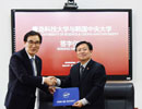 3月8日下午,青岛科技大学与韩国中央大学出国留学培训项目合作协议签字仪式在崂山校区综合服务楼2015会议室举行。