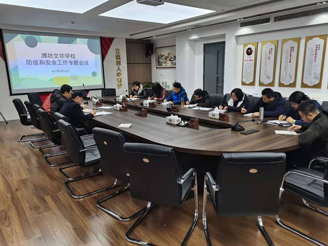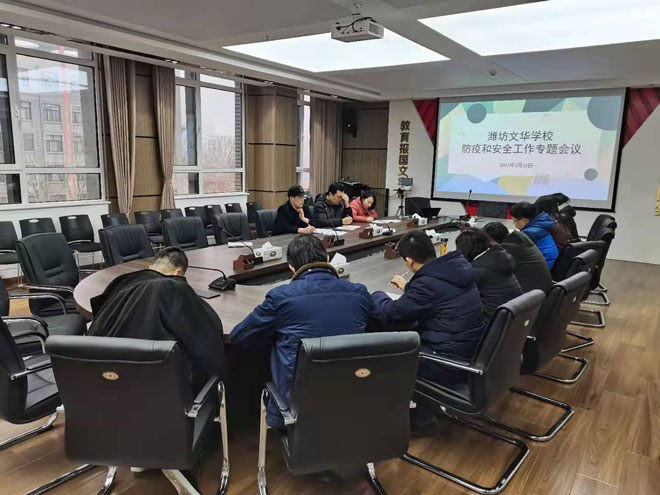 发布时间:04-25 来源:潍坊文华学校2021年1月15日潍坊文华学校召开了防疫和安全专题会议,会议由尹春燕副校长主持,各部门主任及疫情防控工作小组成员参会。