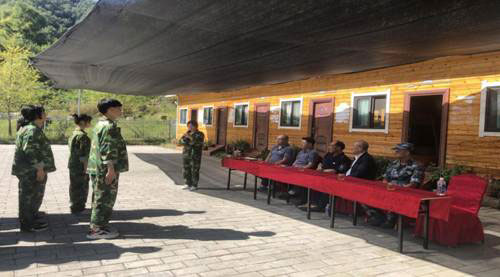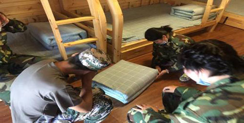 本次素质拓展训练在蓝田金银花野营基地举行。尽管赤日当空,但同学们热情不减,精神抖擞地参与各项目素质拓展训练中。在教官亲切关怀和严格训练下,在短短6天5夜里,齐步走、正步走、起步变正步、解散、集合及分列式等预定训练科目已初见成效。官手把手教整理内务如:“豆腐块”叠被法、拖鞋怎样摆放……学生认真的学,在军训队列比赛中,方队整齐,精神饱满,步伐矫健、口令准确、声音嘹亮。