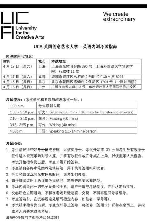 UCA | 四月国内线下英语内测