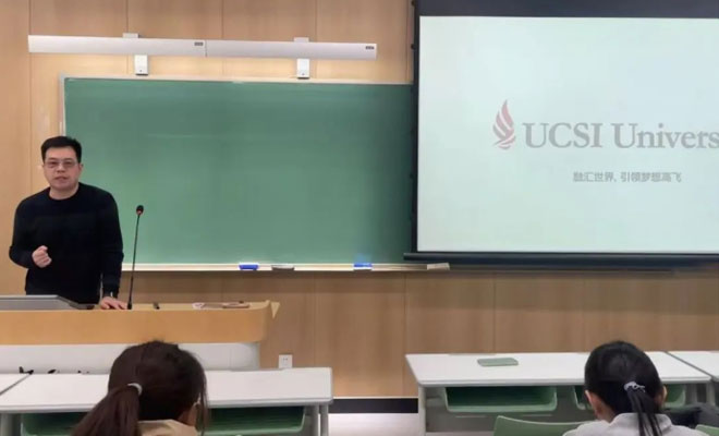 发布时间:05-17 来源:中国传媒大学国际(预科)教育中心2024年12月18日下午,马来西亚思特雅大学的校方代表施老师应邀来到中国传媒大学,为中国传媒大学2+2国际本科东南亚方向2023级学员进行留学宣讲。