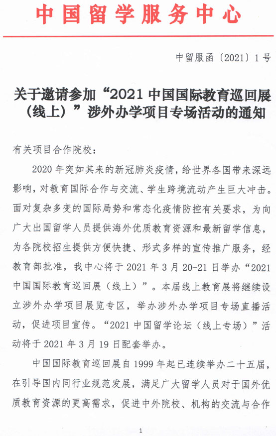 我院受邀参加中留服“2021中国国际教育巡回展”