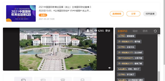 发布时间:05-21 来源:上海立信会计金融学院国际财经学院2020年突如其来的疫情给世界各国带来深远的影响,尤其是对国际教育和学生跨境流动产生极大冲击,为了向广大出国留学人员提供海外优质的教育资源,上海立信会计金融学院国际财经学院(以下简称“立信国际财经”)受邀参加由中国(教育部)留学服务中心举办的“2021中国国际教育巡回展(线上)”,通过网络直播平台在线宣讲,突出我院国际项目的优势,并且提供留学的专业建议。