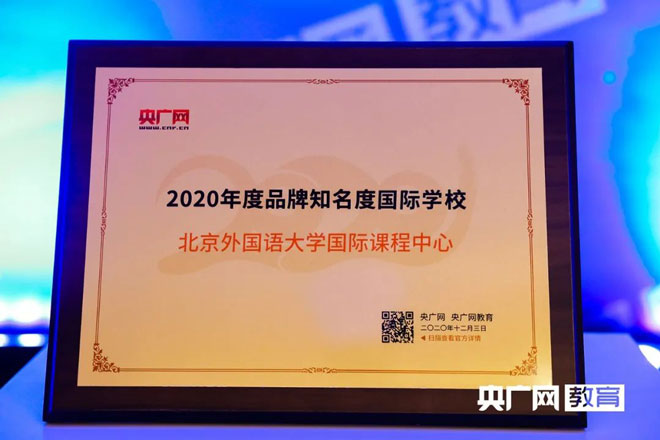 发布时间:05-23 来源:北京外国语大学国际课程中心12月3日,乘风破浪·聚教未来——2020年度央广网教育峰会在京举行。在此次峰会中北京外国语大学国际课程中心也凭借良好的业内口碑、深厚的教学实力,出色的升学成果,以及家长的支持与信赖荣获“2020年度品牌知名度国际学校”称号。
