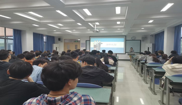 发布时间:05-30 来源:西南财经大学出国留学预备学院4月25日晚,西南财经大学出国留学预备学院在明德楼511教室举办涉外礼仪培训讲座。此次讲座邀请到西南财经大学国际交流与合作处的袁源作为主讲老师,袁老师从事国际交流与合作工作十余年,在教育部国际司工作期间曾多次参加国家级外事接待和组织外事活动,有丰富的涉外礼仪经验。一、二年级全体学生参加了讲座。