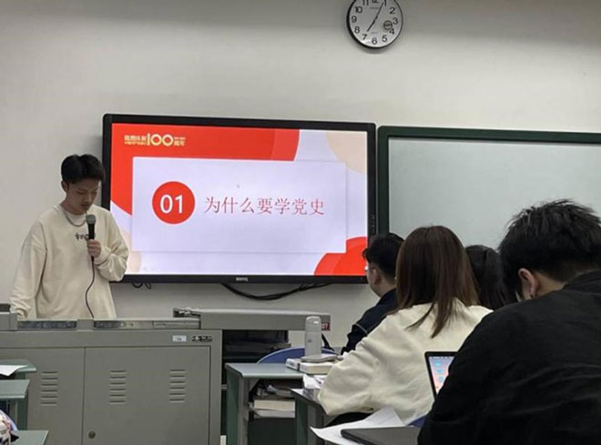2021年春季学期,学院组织学生开展“党史学习”系列活动,通过聆听专题党史学习班会课、现场党史知识提问、观看红色的电影、设立党史学习阅读角等形式,进一步加强学生党史学习教育,让广大学生在回望百年党史中筑牢信仰根基。