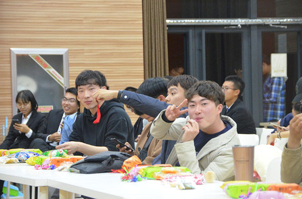 才艺展示结束之后,中外学生一起进入了游戏环节。活动中,全体成员随机分成五组,组织了推理能力考验、萝卜蹲、一反常态、五毛一块等游戏。这些小游戏具有独特的意义和魅力,现场留学生们从认真聆听讲解,积极参与其中,遇到困惑时纷纷向其他同学学习请教。游戏之余还设置了中韩知识抢答环节,留学生在此环节纷纷举手要求回答问题,一度导致工作人员不知将机会留给哪位同学。晚会为留学生朋友们准备了中国结作为纪念品,活动现场洋溢着欢声笑语,参加这样的活动也增进了他们彼此之间的友谊。
