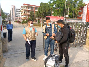 校园门口,积极的志愿者们和老师一起从早上一直持续到晚上十点,甚至为了等待火车晚点的同学等到11点半。带着口罩随时随地的接待归来的学生们!他们测量体温、查验健康码和行程卡,帮助行李多的同学搬运行李,虽然满头的汗水,但是他们的笑容比阳光还灿烂。