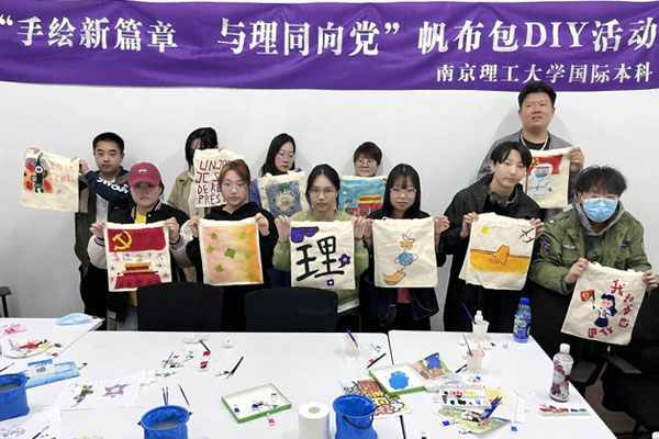 南京理工大学国际本科举办“手绘新篇章 与理同向党”手绘帆布包DIY活动