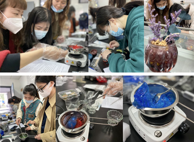 发布时间:06-10 来源:上海外国语大学贤达经济人文学院为纪念今天这个特殊的日子,上外贤达国际课程中心与校学服中心联袂举办了一场特别的庆祝活动 ---学习通过化学实验制作艺术蜡烛,让参加活动的近30位来自本校各部门的女教师们通过运用与自己本专业相隔甚远的化学实验手段来亲手完成一件具有基本功能的艺术作品(MVAP: minimum viable art product),亲身感受跨学科的实践活动带来的不同体验,为跨学科融合发展提供了第一手感性认识,因而赋予了这个节日活动以更深层次的意义。