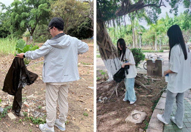 随着"绿色接力"行动启动,同学们手持清洁工具,分组对荔枝岛生态区域展开系统清理。从步道落叶到灌木丛中的隐蔽垃圾,团队通过科学分类处理,将环保理念转化为躬身实践。俯身拾捡间,不仅还原了岛屿的生态之美,更展现了新时代青年的环境担当。
