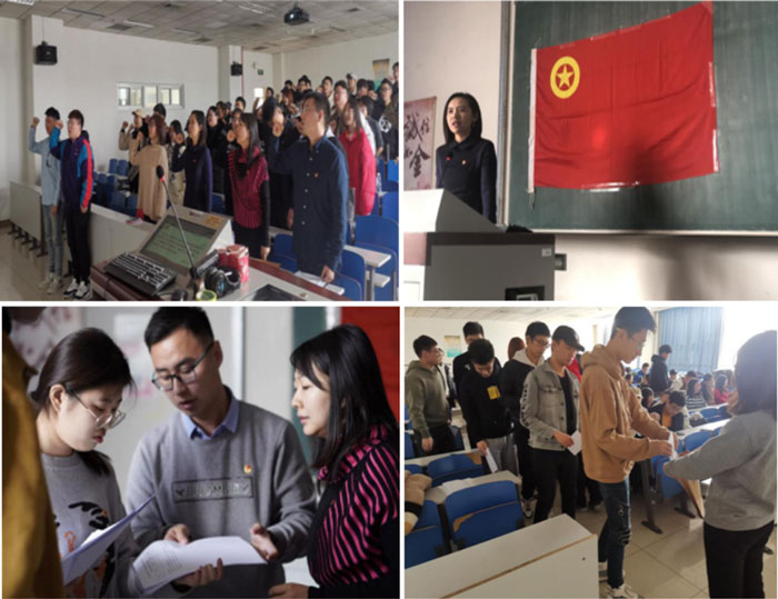 随后,2018级团支部书记于子航发言,他表示将不负众望,积极投身于团支部建设当中。发言结束后,两位新当选的团支部书记带领全体团员重温入团誓词。