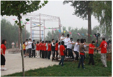 紧接着,我们又分别进行了断桥,电网两个项目,每个挑战都带给了我们不同的感悟,断桥中,永远记得教练的那句教诲--如果你已经决定开始,那么唯一的选择就是继续下去,不论结果如何。的确,路是自己选的,没有理由后悔,正如现实中的我们,既然已经作出出国的决定,那么唯一的选择就是战胜自己的胆怯和懒惰,跨越过这艰难的一步,那也将是通往成功的制胜飞跃。而在电网中更多体会到的是谋划和团结的作用。每一个网就像人生的一道门,在进门之前都需要有认真的思考然后借助朋友的力量才能成功。如果只是单凭自己,低头蛮干。结果只有自己去品尝失败的苦果。