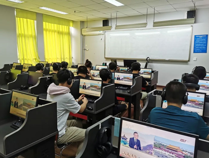 课间同学们观看全国抗击新冠肺炎疫情表彰大会