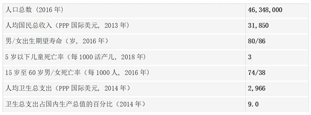 西班牙卫生概况统计(数据来源 WHO官网最新数据)