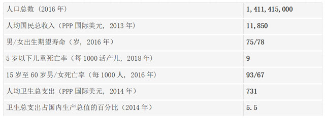中国卫生概况统计(数据来源 WHO官网最新数据)