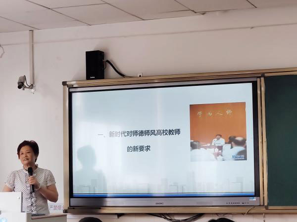 邓淑华教授以新时代对高校教师师德师风的新要求为切入,详细解读教育部关于师德师风建设相关政策文件和要求,并结合习近平总书记系列重要讲话,对加强师德师风修养、明确教师职能、提高防腐意识、认清岗位风险、强化师德监督等方面进行讲解,同时以警示案列告诫大家要守住道德的防线,纪律的底线,努力靠高线,提升自我的知识修养和文化品位,做有道德、有情怀、讲方法的好老师。