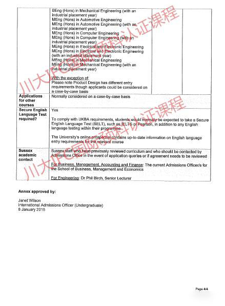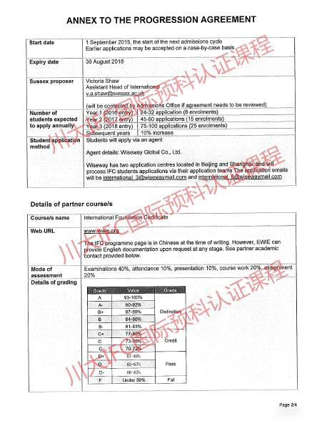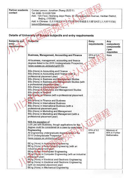 苏塞克斯大学针对于就读IFC国际预科认证课程的学生全面详细罗列了学生就读IFC后,对接不同的专业所需的IFC预科专业课成绩要求。详见下图协议:
