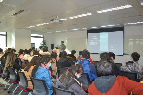 12月16日下午上海大学ACCA项目2018级、2019级部分学生在辅导员付老师及邓老师的带领下前往位于上海淮海中路中环广场ACCA上海办事处,进行参访见习活动。办事处位于浦西CBD,在新天地附近,毗邻普华永道办公楼、麦肯锡公司、埃森哲公司。