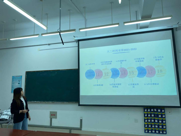 发布时间:02-25 来源:山师出国留学培训基地英美澳加项目11月3日晚,学校出国留学培训基地在长清湖校区举办了2020级新生学习规划讲座。此次讲座由辅导员苑珍老师主讲,学校留培基地2020级全体新生参加。