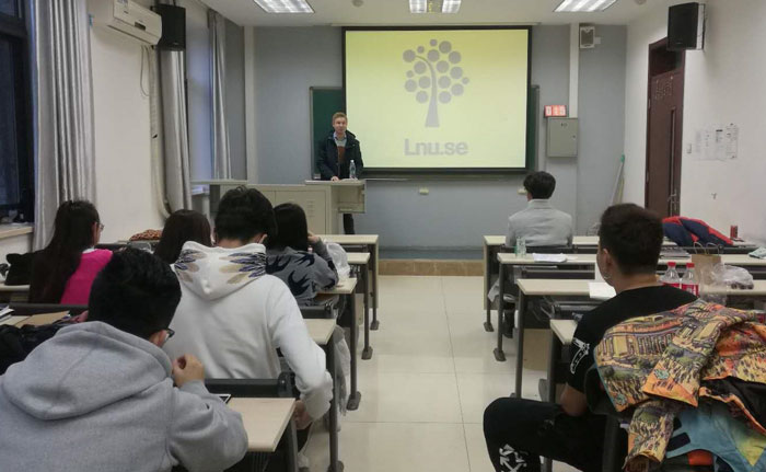 发布时间:11-27 来源:北京理工大学人文与社会科学学院在北理工北欧留学项目第一学期,学生们在面临诸多学习任务的同时,还要眼望全球,时刻洞悉最新留学资讯,以便为年底最终选择心仪学校和专业奠定基础。为了帮助学生们对北欧大学特别是瑞典大学有一个直观认识,按照既定教学安排,瑞典延雪平大学和林奈大学在2018年11月底先后来到北京理工大学,作为十月份北理工访问两所大学的回访,和同学们亲切座谈,向大家转达了最新的北欧留学资讯。