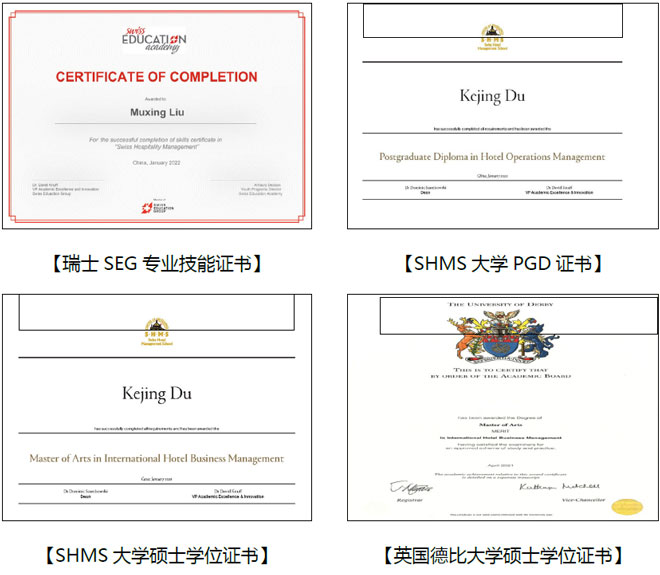 · 完成SHMS国际硕士所有课程后,学生分别可获得SHMS及英国德比大学颁发的双硕士学位证书,学历受到全球认可。