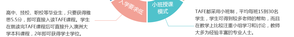 特别提示:根据澳大利亚政府的有关规定,获得TAFE文凭者,可不通过入学考试直接进入大学继续进行学士学位学习,只需2年即可获得学士学位。